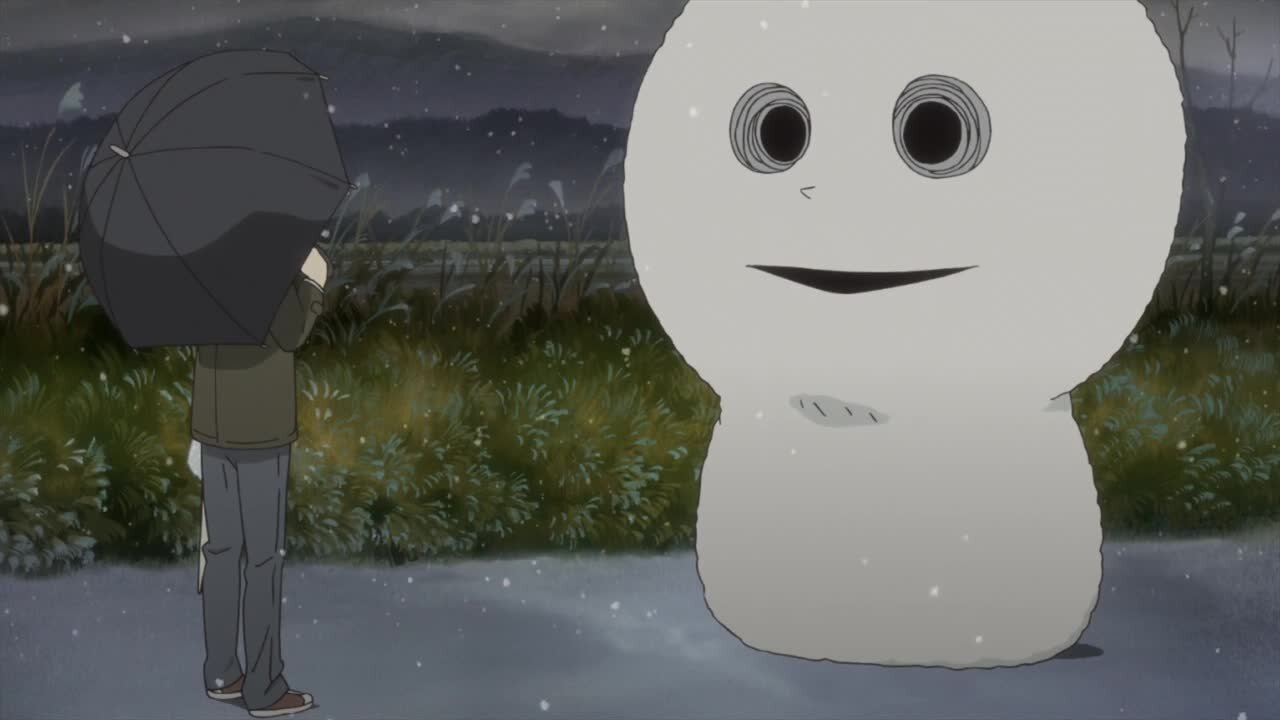 Обрадовавшись первому снегу, Такаси отправляется на прогулку. Наслаждаясь прохладой и падающими снежинками, он встречает пушистого снеговика-ёкая с чёрными глазами, который ищет нечто тёплое и блестящее. Такаси решает помочь ему в поисках.