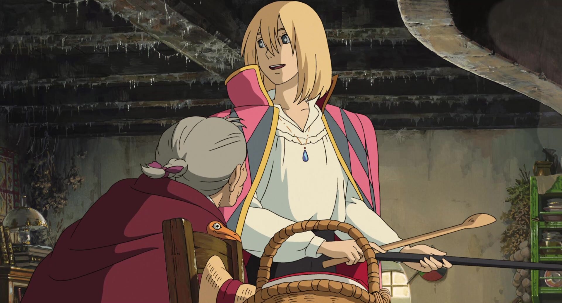 Злая ведьма заточила 18-летнюю Софи в тело старухи. Девушка-бабушка бежит из города куда глаза глядят и встречает удивительный дом на ножках, где знакомится с могущественным волшебником Хаулом и демоном Кальцифером. Кальцифер должен служить Хаулу по договору, условия которого он не может разглашать. Девушка и демон решают помочь друг другу избавиться от злых чар.